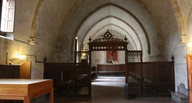 Malgrat el que disposava la regla, sembla que la comunitat no va començar a menjar plegada fins al dia de Sant Joan de l’any 1494. Per celebrar-ho, es va fer un àpat especial amb cabrit, formatge i fruites. Per a l’ocasió, es van comprar expressament 40 culleres de fusta, que devia ser el nombre de monges que formaven la comunitat. Poc després, el 1516, la nova abadessa, sor Maria d’Aragó, va ornar la capçalera de la gran sala amb unes pintures i un conjunt escultòric del qual avui només es conserva l’escut de l’abadessa.