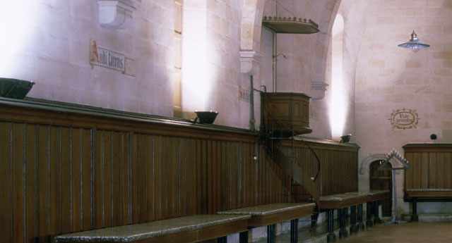 A les darreries del segle XIX, el refetor, juntament amb el dormidor i el cor alt de l’església, continuava sent un dels espais del conjunt monacal on les religioses es reunien en comunitat, en aquest cas, per fer-hi els àpats del dia, en silenci i seguint les lectures que es recitaven des del púlpit.