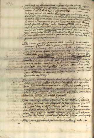 Primerament lo dit Barthomeu Brufal conve y en bon afe promet a dits Magnifichs senyors Concellers que ell dins dos mesos y migd e vuy avant comptadors a cost y despeses sues propries posant en aquella ço es la cals arena pedra guix manoba e tot lo qui per dita obra sera manester. Primo una paret de pedra y morter que partira del canto del sparo de la dita sglesia la qual sta y fatancha ab la instancia que vuy es lo torn so es per part de fora y aquella anira o juntara ab la paret o tapia que afronta ab lo pati de la cuyna dels mossos del dit monestir desfent la dita tapia que vuy y es pujara aquella fins a junctar ab un sparo que alli es conforme la trasa que per dit mestre es stada donada lliurada a dits Magnifichs senyors concellers fent los fonaments de la dita paret conforem los de la altra paret que de baix se designara vers lo pati si ja cloneis dit mestre no trobave rocha viva hont dita paret se pogues carregar en ferm
