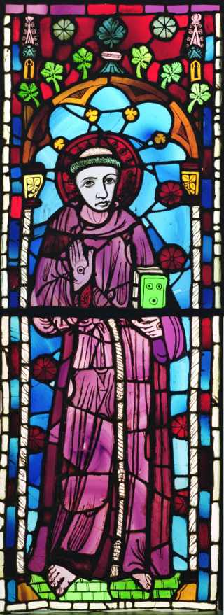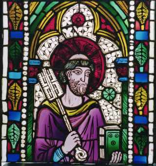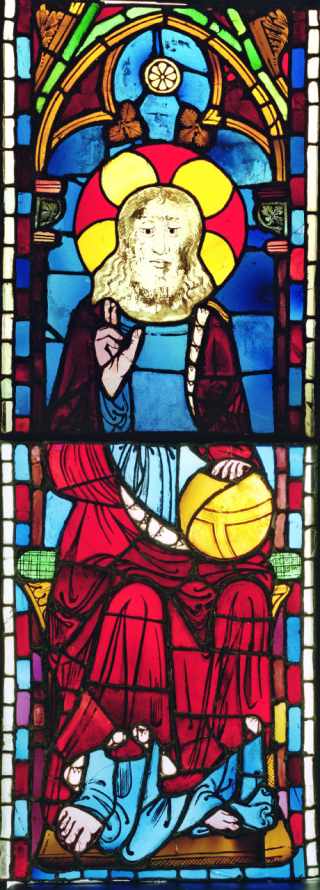 L’art de la vidrieria va assolir una destacada originalitat i un gran desenvolupament a la Catalunya medieval, coincidint amb l’expansió de l’arquitectura gòtica. L’església de Pedralbes es va començar a construir l’any 1326, i el tancament amb volta de creueria, probablement cap a mitjan segle XIV, devia facilitar la col·locació dels vitralls decoratius. La manca de dades documentals concretes impedeixen precisar quan es van instal·lar i qui en va ser l’autor. Amb tot, les característiques tècniques i compositives dels vidres, amb un estil lineal i expressionista de pinzellada curta i amb força, vinculen aquest conjunt a l’obra d’un taller local amb influències del nord d’Europa i italianitzants. Al llarg del segle XV, diversos vitrallers localitzats a Barcelona, com ara Terri de Metz o Gil Fontanet, van treballar al monestir adaptant o adobant vidrieres de l’església.