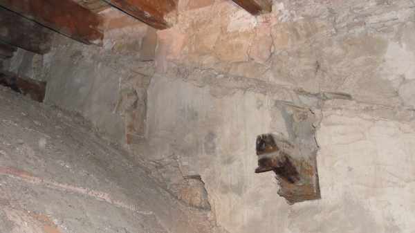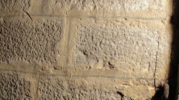 Amb motiu de la troballa de la coberta del segle XV l’any 2010, també es va poder observar que alguns trams de mur encara conservaven l’encintat de junta original. Aquest, fet amb morter de calç, tenia per objectiu protegir la junta entre els carreus i, per tant, la integritat del mur. En aquest cas, presenta la particularitat que, per mantenir la fesomia regular del mur de carreus, un cop recoberta la junta, el morter de calç es va decorar amb unes línies negres que resseguien les línies d’encintat.