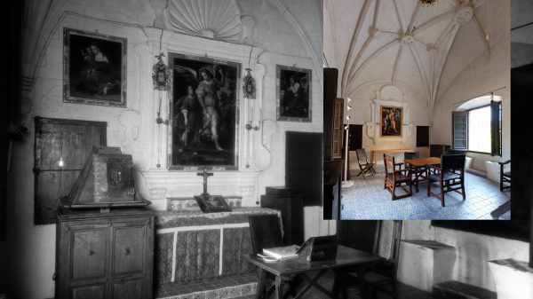 La cel·la de Sant Rafael es cobreix amb una variació de la volta estrellada, probablement de guix i maó, amb medallons o claus de volta a cadascun dels extrems dels arcs, que mostren relleus figurats dels quatre apòstols i d’escenes del Nou Testament. L’escut a la clau de volta principal presenta decoració pictòrica.