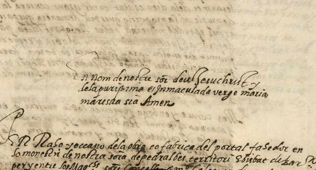 El 18 de agosto de 1576, los consejeros de la ciudad de Barcelona firmaron unas capitulaciones con el maestro de obras Bartomeu Brufal para la construcción de un nuevo portal en el monasterio por el precio de 200 libras barcelonesas. Encima de la puerta debía esculpirse el escudo de la ciudad de Barcelona.